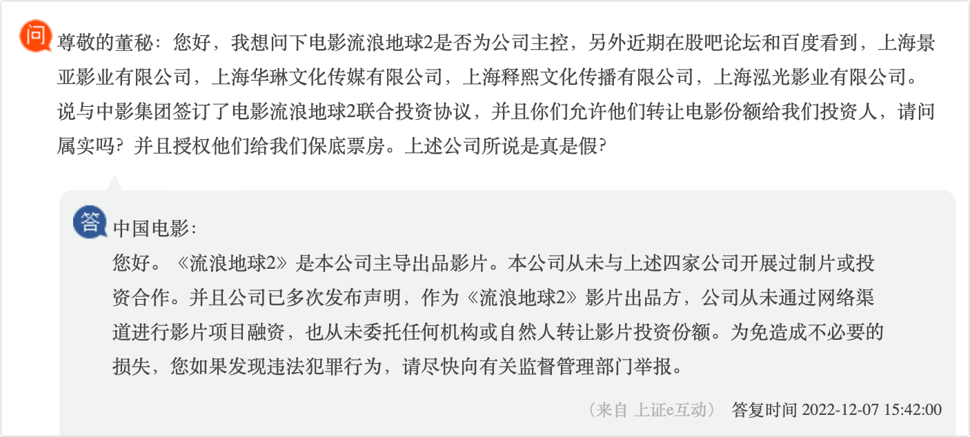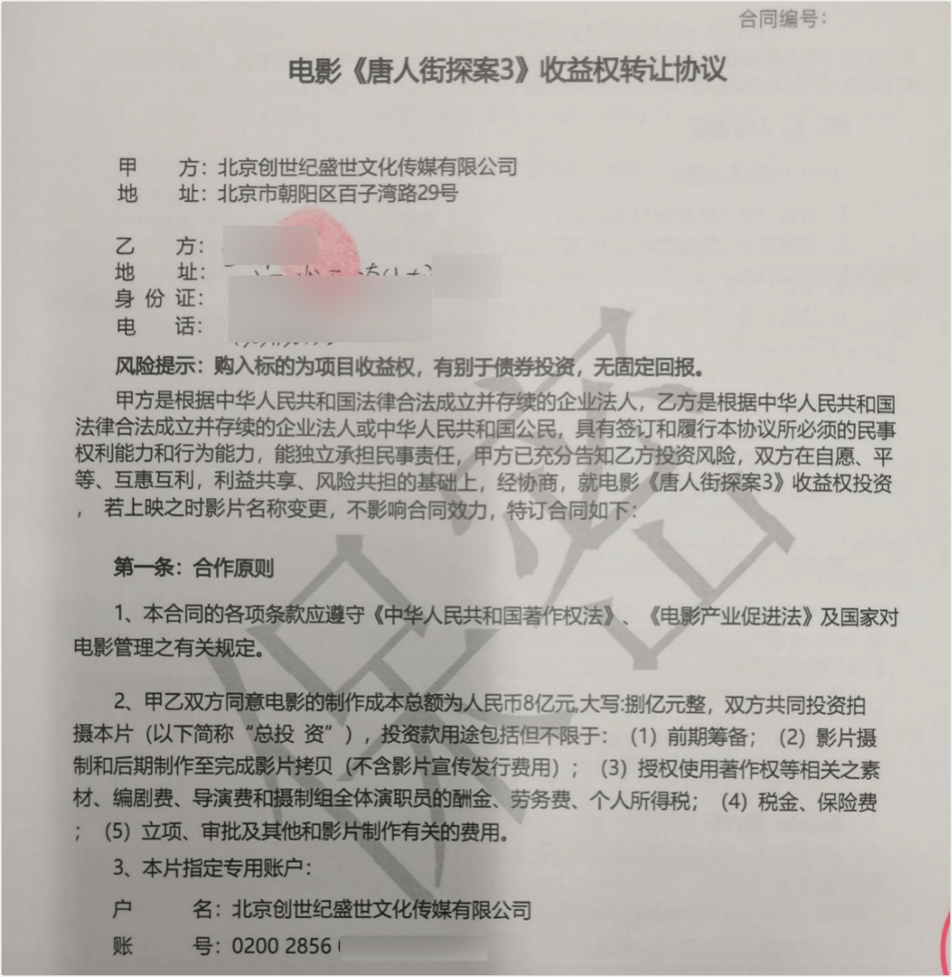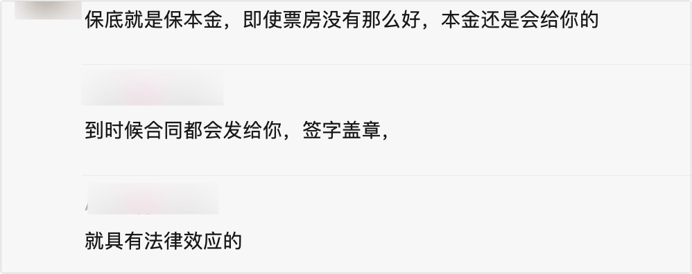 凤凰网《风暴眼》出品 67.57亿元!这是2023年春节档电影总票房,位居中国影史春节档总票房第二名。随着疫情防控政策的优化调整,影视行业也终于熬过寒冬,迎来“开门红”。然而,在行业回暖的背后,一些打着“电影投资分红”的骗局也开始再次活跃。 凤凰网《风暴眼》发现,在一些网站和社交平台上,有不少关于影视投资的帖子和文章。帖子中除了宣传影片的演员阵容等信息外,还会留下所谓的“投资经理”的微信号或QQ号,一步步吸引投资者“上钩”。 “投资10万,最高分红270万”“有保底协议,稳赚不赔”“一线明星参演,票房有保障,绝对能分红”……“投资经理”们这些极具诱惑性的话术真假难辨,投资者一不小心就会陷入精心设计的“杀猪盘”,最终血本无归。 ![]() “授权协议”真假难辨,分红条款暗藏套路 这些所谓的“电影投资”项目中,究竟藏着哪些套路?为何不少有阅历、有学历的人也会轻信“高分红高收益”的承诺,从而一步步陷入骗局呢? 凤凰网《风暴眼》以投资者身份添加了一个号称可参与投资《流浪地球2》的小广告中的“投资经理”。该“投资经理”向告诉记者,《流浪地球2》已经上映,目前已经不能参与投资。其向记者推荐了定档于今年五一期间的《长空之王》,称“票房比较有保障”。 根据这位“投资经理”的介绍,《长空之王》制作成本为2.8亿,个人投资者5.6万起投,与上海华琳文化传媒有限公司签订投资合同。投资流程为先确定参与的电影项目,然后支付定金去出品公司面签(或者邮寄)合同,拿到合同后付尾款,然后回寄合同。最后等待电影上映,电影下映等待分红。 ![]() 该“投资经理”提供的《长空之王》票房分红预期收益表显示,投资者的分红收益率随着投资金额和票房的不同而变化。投资回报率最低为104%,最高则达到了363%。 ![]() 凤凰网《风暴眼》了解到,《长空之王》是一部讲述年轻试飞员成长并突破试炼旅程的影片,主演阵容包括王一博、胡军、周冬雨等。影片的出品方有上海亭东影业有限公司、北京阿里巴巴影业文化有限公司等。出品方和联合出品方中均没有上海华琳文化传媒有限公司。 当记者提出这个疑问时,该“投资经理”表示:“上海华琳的份额是从阿里巴巴拿的,到时候如果要参与的话,版权链这些都是可以看到的,有协议的。”而当记者提出能否看一下阿里巴巴(阿里影业)的份额转让合同时,“投资经理”表示需要付1000元定金以后才能看,定金随时可退。 为了打消记者的疑虑并让促使记者赶快投资,该投资经理还向记者发送了一份所谓的“保底协议”,并表示“保底就是保本金,即使票房没有那么好,本金还是会给你的”。 ![]() 天眼查显示,上海华琳成立于2020年,是一家以从事广播、电视、电影和录音制作业为主的企业,注册资本3000万,郑圣斌为公司法人和实际控制人。从股权上看,上海华琳与阿里影业并无联系,也并未找到两者有合作关系的相关报道。 那么,不在《长空之王》出品方名单中的上海华琳是否真的拿到了阿里影业的份额转让呢?对此,凤凰网《风暴眼》向阿里影业的相关人员进行了求证,阿里影业回复称:经核实后,阿里影业不存在所谓的对外“转让份额”的情况。 这也意味着,上海华琳所谓的“从阿里影业拿到的份额”的说法,只不过是打着阿里影业的旗号来欺骗投资者。凤凰网《风暴眼》发现,《流浪地球2》上映前,就曾有传言称上海华琳等四家公司与出品方之一中国电影签订了电影流浪地球2联合投资协议,允许四家公司转让电影份额给投资者。 对此,中国电影去年12月在互动平台声明:公司从未与上海华琳四家公司开展过制片或投资合作。从未通过网络渠道进行影片项目融资,也从未委托任何机构或自然人转让影片投资份额。如果发现违法犯罪行为,请尽快向有关监督管理部门举报。 ![]() 实际上,类似的打着影片出品方或者演员、导演的旗号,来迷惑投资者的“影视投资公司”不在少数。影视传媒行业分析师曾荣曾指出:“盖着公章的授权协议、转让合同以及各类电影项目介绍资料,这已成为电影投资骗局中必备的道具,也往往是让被骗者放下警惕的一组关键道具。” 青年剧作家、导演向凯对凤凰网《风暴眼》表示,影视行业的投资基本上都是以机构或者是大型资方的形式进行的,面向个人的这种投资所占比例还是比较小。网上那些宣传电影投资分红的广告大部分都不太可信,一定要引起警惕。 向凯指出,一般正规的出品方是极少在互联网上发布这种投资分红的广告的。网上发布的这些电影投资分红广告,基本上都是虚假信息,或者是它们盗取了一些出品方的相关信息或资料,然后进行诈骗。一旦投资者相信了这些掏钱投资,基本上都是有去无回。 另外,投资者和这些“影视投资公司”签订的合同中,也暗藏套路。有行业人士对凤凰网《风暴眼》表示,因为合同条款中所说的电影成本中并不包括宣传发行费用和宣发代理费用,所以即便电影票房很高,这些影视投资公司也可能会以宣发费用高导致电影亏损为由,拒绝向投资者分红,甚至拒绝返还本金。 ![]() 有投资者也向凤凰网《风暴眼》透露,一些“影视投资公司”虽然也按照约定返还了投资款,但只是很少很少一部分。例如投资者投资了10万元,影视投资公司只返还5000元。理由则是“票房不佳,投资失利”或者“宣发成本高,电影